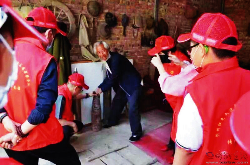 該館負責人劉存富向大家展示了紅軍穿過的草鞋、與日本侵略者拼殺用過的大刀等,每件展品都藏著一段可歌可泣的英雄故事?!翱吹竭@么多年輕人對歷史感興趣,我特別高興,那些在光輝歲月中無私奉獻的共產(chǎn)黨員的精神品格是值得大家學習的?!?/p>