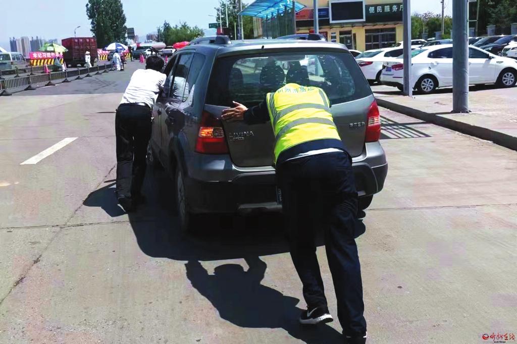 6月5日上午,忻州收費(fèi)站出口處由于有車輛故障而出現(xiàn)堵塞。當(dāng)班班長(zhǎng)劉鈞迅速行動(dòng),幫助司機(jī)將故障車輛推至安全區(qū)域,并聯(lián)系了附近修理廠,叮囑司機(jī)在行車前注意檢查車輛,及時(shí)消除隱患,確保安全行車。(李瑞軍 趙旭霞攝)