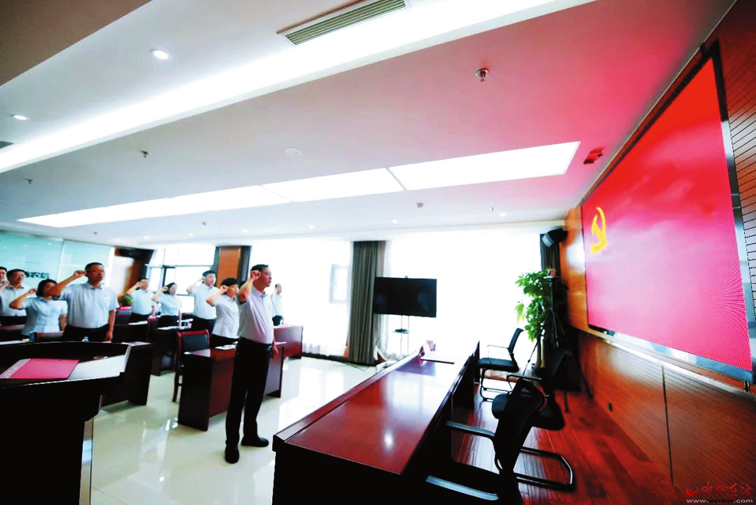 三要久久為功,堅(jiān)定永葆農(nóng)信清廉文化本色。探索清廉文化建設(shè)的新途徑,力求載體上多樣、內(nèi)容上豐富、形式上鮮活,充分調(diào)動(dòng)全員參與的積極性和主動(dòng)性。對(duì)內(nèi)推動(dòng)員工合規(guī)從業(yè),營(yíng)造風(fēng)清氣正的內(nèi)部環(huán)境,增強(qiáng)員工的向心力和凝聚力;對(duì)外傳導(dǎo)“用心服務(wù)、成就客戶”的服務(wù)理念,增強(qiáng)對(duì)客戶的感召力和誠(chéng)信度,構(gòu)建“平安、健康、和諧”的金融生態(tài)。持續(xù)加強(qiáng)黨風(fēng)廉政建設(shè),扎實(shí)開展專項(xiàng)整治、以案促改、家風(fēng)教育、清廉典型選樹和常態(tài)化清廉文化宣傳教育,切實(shí)提高廉潔從業(yè)意識(shí),一體推進(jìn)“不敢腐、不能腐、不想腐”,為農(nóng)信事業(yè)穩(wěn)健發(fā)展提供堅(jiān)強(qiáng)保障。圖為全體黨員重溫入黨誓詞,并宣讀《山西農(nóng)信員工清廉宣言》。(任飛鴻攝影報(bào)道)