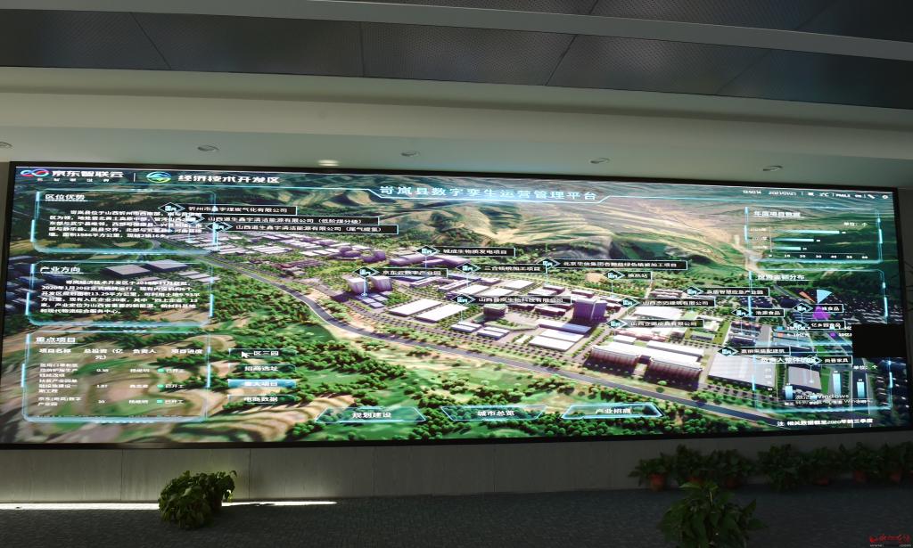 在位于岢嵐縣融媒體中心的項(xiàng)目臨時辦公地,對著占滿一堵墻的大屏幕,記者聽取了京東(岢嵐)有關(guān)業(yè)務(wù)工作人員的情況介紹。