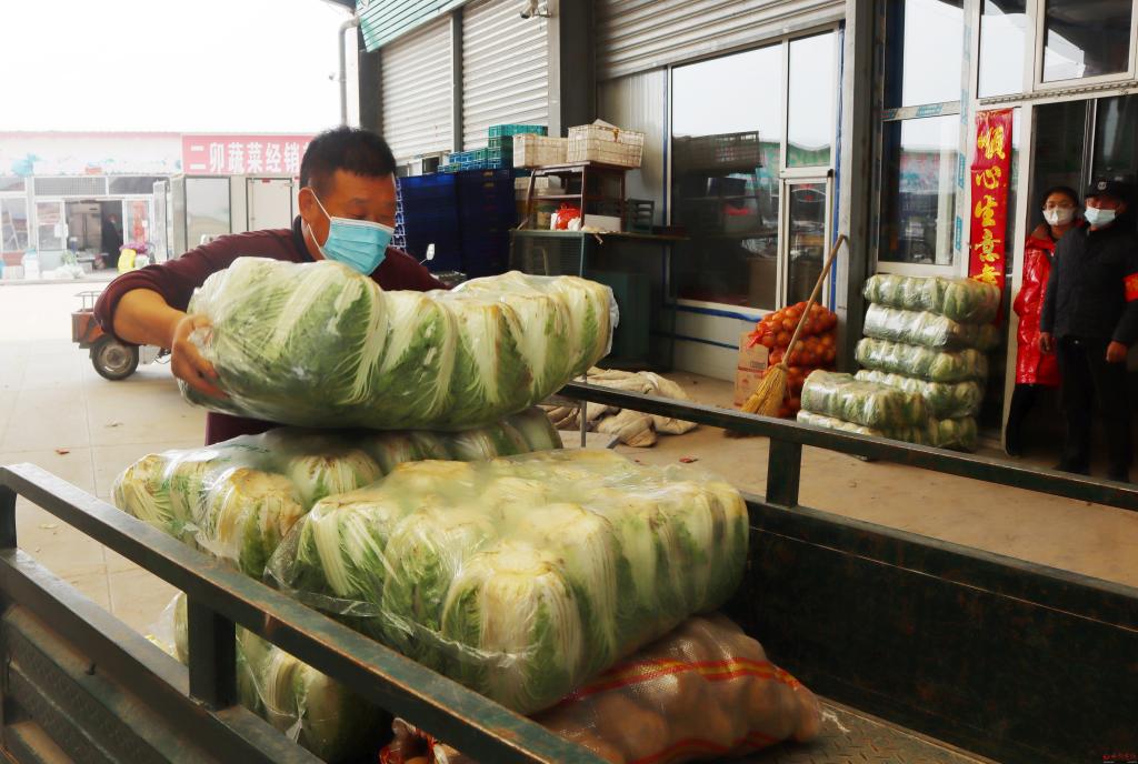 當(dāng)日上午10時,記者在忻府區(qū)華瑞農(nóng)副產(chǎn)品批發(fā)市場看到,商戶們正在有條不紊地裝貨卸貨,白菜、豆角、茴子白、蘋果等群眾日常所需的蔬菜和水果供應(yīng)充足。