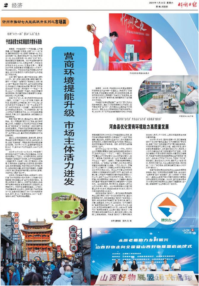 從黃河之畔到五臺(tái)山下,一些變化正在忻州大地悄然發(fā)生。2023年,我市從促進(jìn)經(jīng)營(yíng)主體發(fā)展、大力優(yōu)化營(yíng)商環(huán)境、加快建設(shè)高標(biāo)準(zhǔn)市場(chǎng)體系三個(gè)維度推動(dòng)市場(chǎng)能級(jí)躍升,詮釋著貫徹黨的二十大精神開局之年的新作為、新風(fēng)貌,以“看不見的手”推動(dòng)著忻州經(jīng)濟(jì)社會(huì)高質(zhì)量發(fā)展。