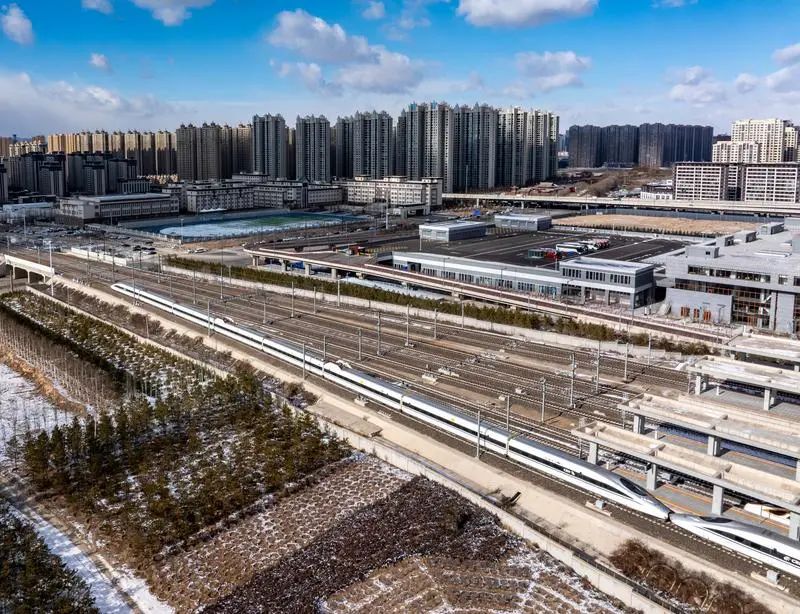 高鐵動(dòng)車(chē)組列車(chē)宛如一條鋼鐵巨龍?jiān)谛弥荽蟮仳暄焉煺?,以風(fēng)馳電掣般的速度,縮短了城市之間的時(shí)空距離,加速了人員的流動(dòng),在這片古老而厚重的土地上勾勒出民生幸福的溫暖圖景、旅游經(jīng)濟(jì)的上揚(yáng)曲線以及產(chǎn)業(yè)協(xié)同發(fā)展的絢麗篇章。