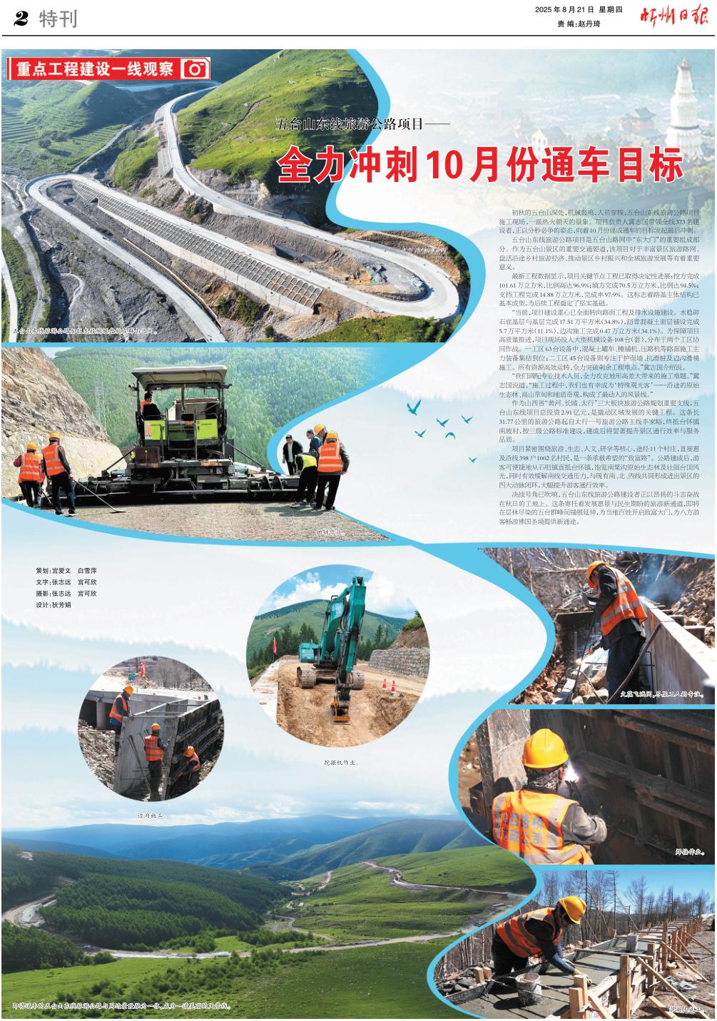 決戰(zhàn)號(hào)角已吹響,五臺(tái)山東線旅游公路建設(shè)者正以昂揚(yáng)的斗志奮戰(zhàn)在秋日的工地上。這條寄托著發(fā)展愿景與民生期盼的旅游新通道,即將在層林盡染的五臺(tái)群峰間鋪展延伸,為當(dāng)?shù)匕傩臻_(kāi)啟致富大門(mén),為八方游客暢游佛國(guó)圣境提供新通途。