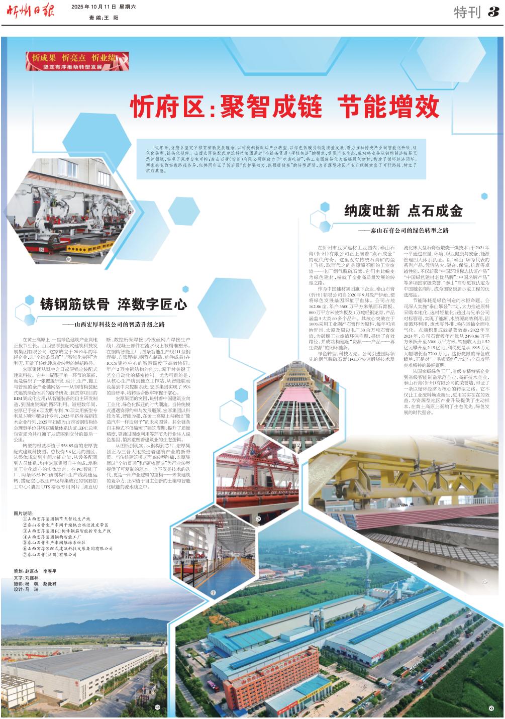 近年來,忻府區(qū)堅定不移貫徹新發(fā)展理念,以科技創(chuàng)新驅(qū)動產(chǎn)業(yè)轉(zhuǎn)型,以綠色低碳引領(lǐng)高質(zhì)量發(fā)展,著力推動傳統(tǒng)產(chǎn)業(yè)向智能化升級、綠色化轉(zhuǎn)型、鏈條化延伸。山西宏厚裝配式建筑科技集團(tuán)通過“全鏈條貫通+硬核智造”的模式,重塑產(chǎn)業(yè)生態(tài),成功將業(yè)務(wù)從鋼構(gòu)制造拓展至芯片領(lǐng)域,實(shí)現(xiàn)了深度自主可控;泰山石膏(忻州)有限公司則致力于“吃廢吐新”,將工業(yè)固廢轉(zhuǎn)化為高端綠色建材,構(gòu)建了循環(huán)經(jīng)濟(jì)閉環(huán)。兩家企業(yè)的實(shí)踐路徑各異,但共同印證了忻府區(qū)“向智要動力、以綠提效益”的轉(zhuǎn)型邏輯,為資源型地區(qū)產(chǎn)業(yè)升級探索出了可行路徑、樹立了實(shí)踐典范。