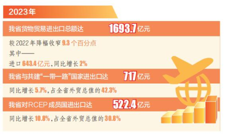 從月度數(shù)據(jù)看,我省外貿(mào)同比連續(xù)4個月實現(xiàn)增長。2023年12月,我省進出口146.6億元,同比增長2.2%,是自9月份以來連續(xù)4個月實現(xiàn)增長。2023年12月進口55.6億元,同比增長18.5%,是自5月份以來連續(xù)8個月實現(xiàn)同比增長。