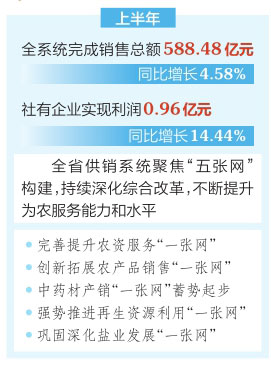 本報(bào)訊(記者高瑋)7月21日,全省供銷(xiāo)系統(tǒng)上半年經(jīng)濟(jì)運(yùn)行分析暨“五張網(wǎng)”構(gòu)建現(xiàn)場(chǎng)推進(jìn)會(huì)在長(zhǎng)治市武鄉(xiāng)縣召開(kāi)。今年以來(lái),全省供銷(xiāo)系統(tǒng)以“五張網(wǎng)”構(gòu)建為統(tǒng)領(lǐng),推動(dòng)供銷(xiāo)工作全面提質(zhì)增效,經(jīng)濟(jì)運(yùn)行穩(wěn)定向好。上半年,全系統(tǒng)完成銷(xiāo)售總額588.48億元,同比增長(zhǎng)4.58%;社有企業(yè)實(shí)現(xiàn)利潤(rùn)0.96億元,同比增長(zhǎng)14.44%。