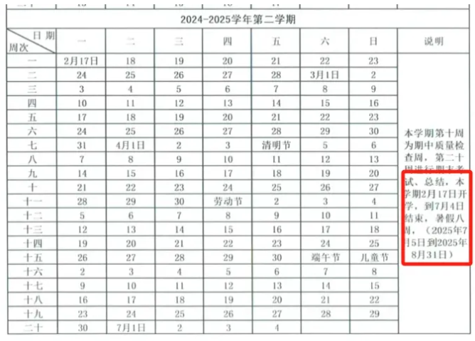日前,運(yùn)城、晉城、晉中、忻州、臨汾等地教育局發(fā)布2025年中小學(xué)、幼兒園的暑假時間。詳情如下: 運(yùn) 城 義務(wù)教育階段學(xué)校:7月1日至8月31日,9月1日(星期一)正式開學(xué)。 普通高中學(xué)校:7月3日至8月24日,8月25日正式開學(xué)。 幼兒園:參照義務(wù)教育階段學(xué)校執(zhí)行。 要求:各縣(市、區(qū))教育局和中小學(xué)校要嚴(yán)格執(zhí)行全市統(tǒng)一放假時間安排,未經(jīng)屬地教育部門批準(zhǔn),任何學(xué)校不得擅自提前或延后放假,不得擅自推遲和延長假期。假期期間,嚴(yán)禁各學(xué)校組織任何形式的集體補(bǔ)課。各高中學(xué)校在經(jīng)屬地教育行政部門批準(zhǔn)后,高三年級學(xué)生可提前兩至三周自愿到校自習(xí),期間教育教學(xué)資源免費(fèi)向?qū)W生開放。 晉 城 義務(wù)教育階段學(xué)校放假時間為7月6日(周日)至8月31日(周日);開學(xué)時間為9月1日(周一)。 普通高中放假時間為7月11日(周五)至8月24日(周日);開學(xué)時間為8月25日(周一) 中等職業(yè)學(xué)校、幼兒園特殊教育學(xué)校放暑假時間,可結(jié)合學(xué)校工作實際參照義務(wù)教育階段,學(xué)校放暑假時間由各學(xué)校自行安排并報主管教育行政部門備案。 要求:各縣(市、區(qū))教育局和中小學(xué)校要嚴(yán)格執(zhí)行全市統(tǒng)一放假時間安排,未經(jīng)屬地教育部門批準(zhǔn),任何學(xué)校不得擅自提前或延后放假,不得利用暑假組織學(xué)生集體上課補(bǔ)課。各高中學(xué)校在經(jīng)屬地教育行政部門批準(zhǔn)后,高三年級學(xué)生可提前兩至三周自愿到校學(xué)習(xí),期間教育教學(xué)資源免費(fèi)向?qū)W生開放。 各地各校要規(guī)范組織期末學(xué)生學(xué)業(yè)質(zhì)量檢測。小學(xué)一二年級不進(jìn)行紙筆測試,義務(wù)教育其他年級考試結(jié)果以等級呈現(xiàn),考試結(jié)果不排名、不公布,以適當(dāng)方式告知學(xué)生和家長,不得將考試結(jié)果在各類家長群傳播。 晉 中 全市各級各類中小學(xué)校統(tǒng)一放假時間為7月5日。義務(wù)教育階段學(xué)校、中等職業(yè)學(xué)校假期至8月31日,9月1日正式上課。普通高中學(xué)校(含中職學(xué)校附設(shè)普通高中班)假期至8月24日,8月25日高一年級新生軍訓(xùn),高二、高三年級正式上課。 各級各類幼兒園結(jié)合實際,以縣統(tǒng)籌安排。 各學(xué)校要嚴(yán)格遵守放假起止時間,不得擅自調(diào)整和隨意增減假期。 忻 州 據(jù)忻州市教育部門發(fā)布的2024至2025學(xué)年度第二學(xué)期校歷,2025年全市中小學(xué)將在6月底迎來考試周,7月5日正式放暑假。