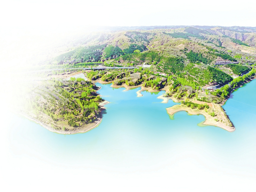 左權(quán)縣左權(quán)湖與湖岸線(xiàn)、樹(shù)木相互映襯,繪就一幅美麗的生態(tài)畫(huà)卷。張文軍攝