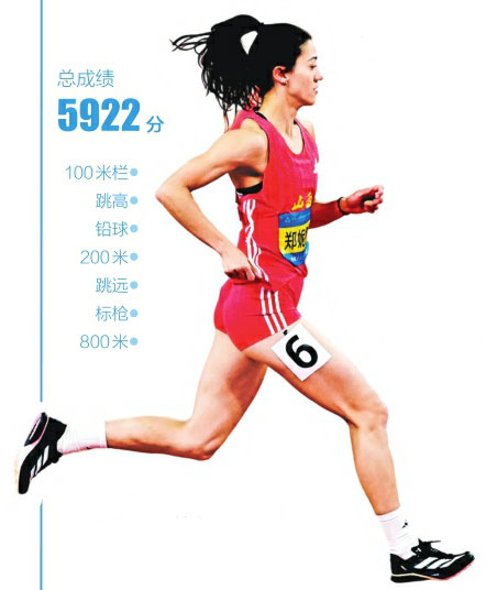 次日較量更為激烈。鄭妮娜力在跳遠比賽中跳出6.08米,排名該項目第二;標槍賽場雖遭遇挑戰(zhàn),但她仍以43.27米的成績拿下730分。在最后的800米決勝戰(zhàn)中,她頂住體能極限壓力,以2分19秒52的成績沖線,最終以5922分的總成績鎖定冠軍。