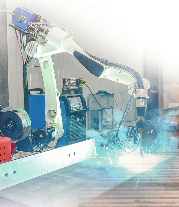 山西中部智造科技有限公司內(nèi),智能機(jī)器人在進(jìn)行焊接作業(yè)。閆銳鵬攝