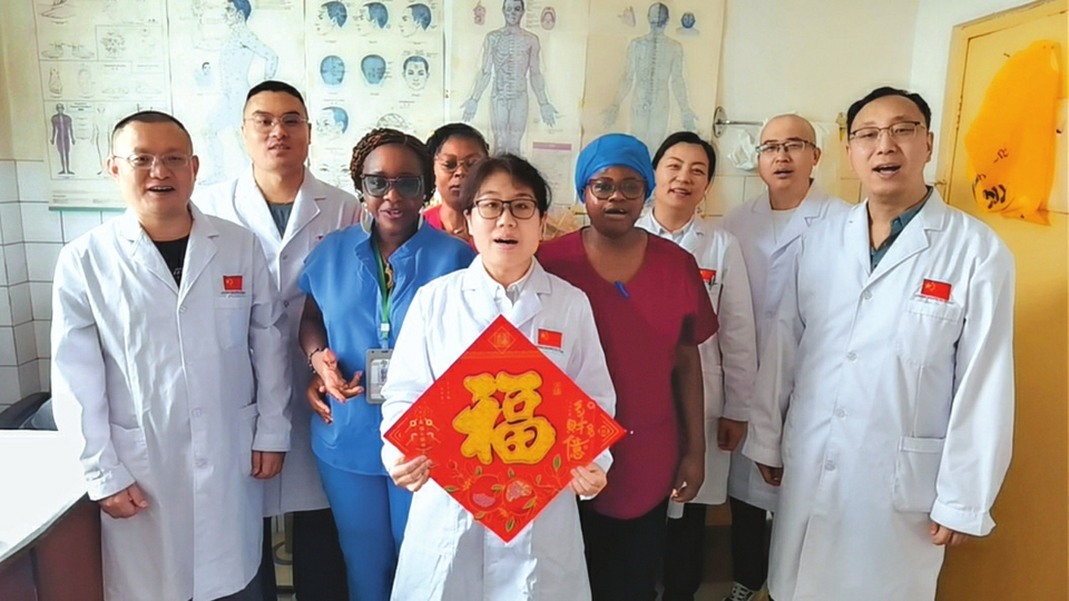 醫(yī)療隊隊員的辛勤付出,深深感動著喀麥隆的醫(yī)護同行和患者。得知中國最重要的傳統(tǒng)節(jié)日——春節(jié)來臨,當(dāng)?shù)蒯t(yī)院的醫(yī)生和患者紛紛向隊員們送上真摯的祝福?!靶履昕鞓?!”“謝謝你們!”簡單的話語,伴隨著友好的笑容和有力的握手,讓遠離故土的隊員們感受到了家一般的溫暖。