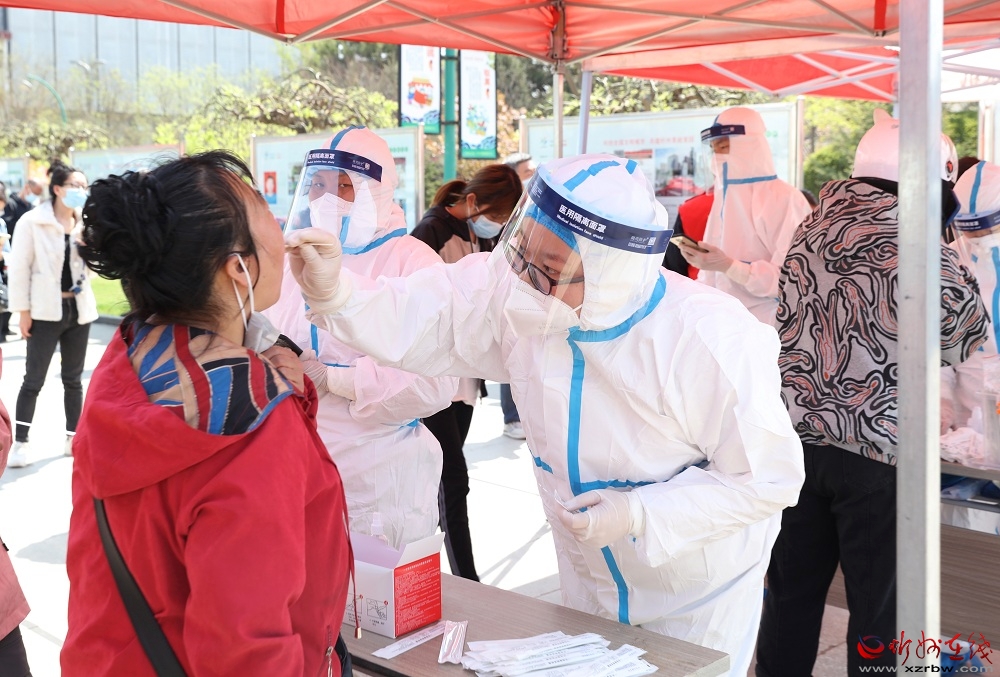 在體育場(chǎng) 范濤 攝 上午10時(shí)許,位于城中片區(qū)體育廣場(chǎng)的8個(gè)采樣點(diǎn)前正排著長(zhǎng)隊(duì),每隔十米便有一個(gè)社區(qū)網(wǎng)格員維持秩序,前來做核酸檢測(cè)的市民都自覺佩戴口罩,并互相保持著一定的距離,有序等待核酸采樣檢測(cè)。 “因?yàn)?月10日我取了韻達(dá)快遞,回來后就變了黃碼,主動(dòng)向社區(qū)報(bào)備后,社區(qū)的工作人員就讓我到這里來做核酸檢測(cè)?!笔忻窀吲勘硎荆舜蚊赓M(fèi)核酸采樣點(diǎn)的設(shè)置對(duì)市民來說比較方便,“現(xiàn)在防疫形勢(shì)比較嚴(yán)峻,做核酸檢測(cè)是對(duì)自己負(fù)責(zé),也是對(duì)周圍人負(fù)責(zé)。”