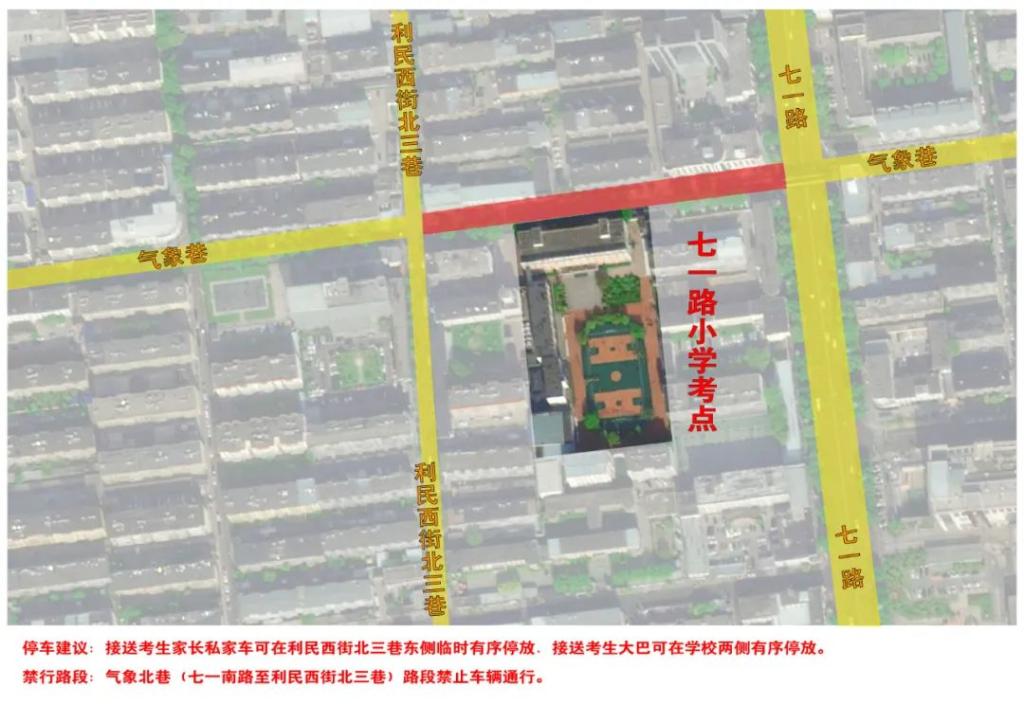 停車建議:接送考生家長(zhǎng)私家車可在利民西街北三巷東側(cè)臨時(shí)有序停放,接送考生大巴可在學(xué)校兩側(cè)有序停放。