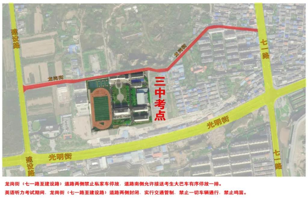 英語(yǔ)聽力考試期間,龍崗街(七一路至建設(shè)路)道路兩側(cè)封閉,實(shí)行交通管制,禁止一切車輛通行,禁止鳴笛。