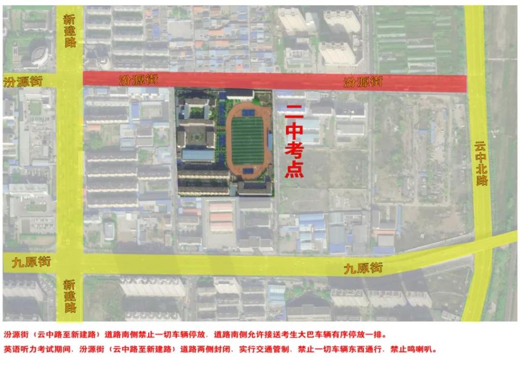 英語(yǔ)聽力考試期間,汾源街(云中路至開發(fā)西街南二巷)道路兩側(cè)封閉,實(shí)行交通管制,禁止一切車輛東西通行,禁止鳴喇叭。