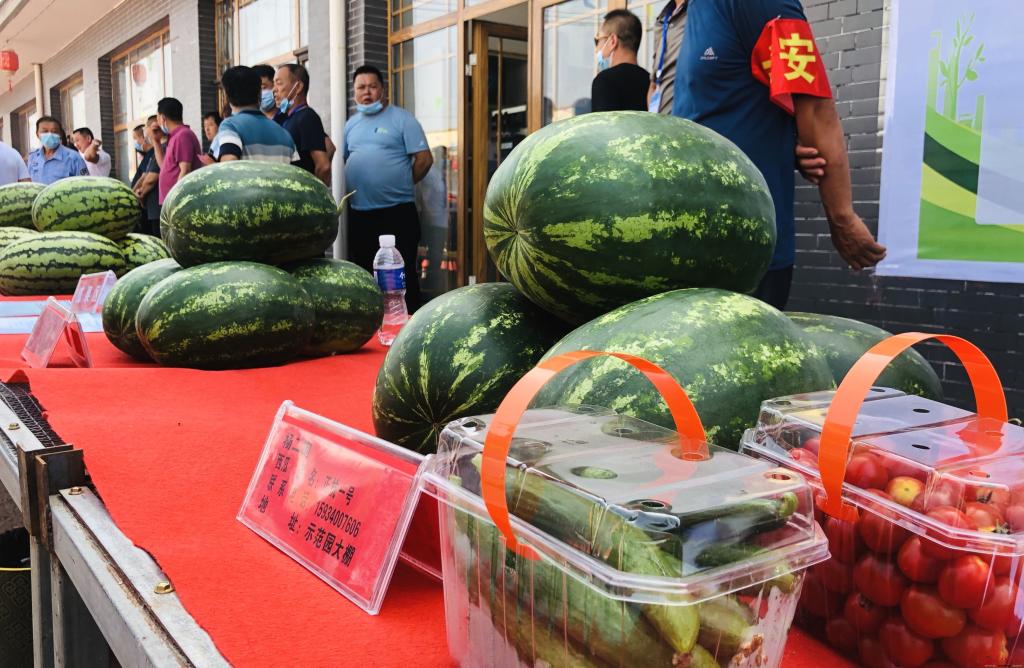 在文化節(jié)現(xiàn)場,鑼鼓歡天、熱鬧非凡,來自全縣多家種植園區(qū)的蔬菜、瓜果等農(nóng)產(chǎn)品被紛紛擺上展臺。其中南園盛產(chǎn)的正抗一號西瓜,個(gè)頭大、品相好、香甜爽口,吸引了眾多市民駐足觀看、品嘗購買。