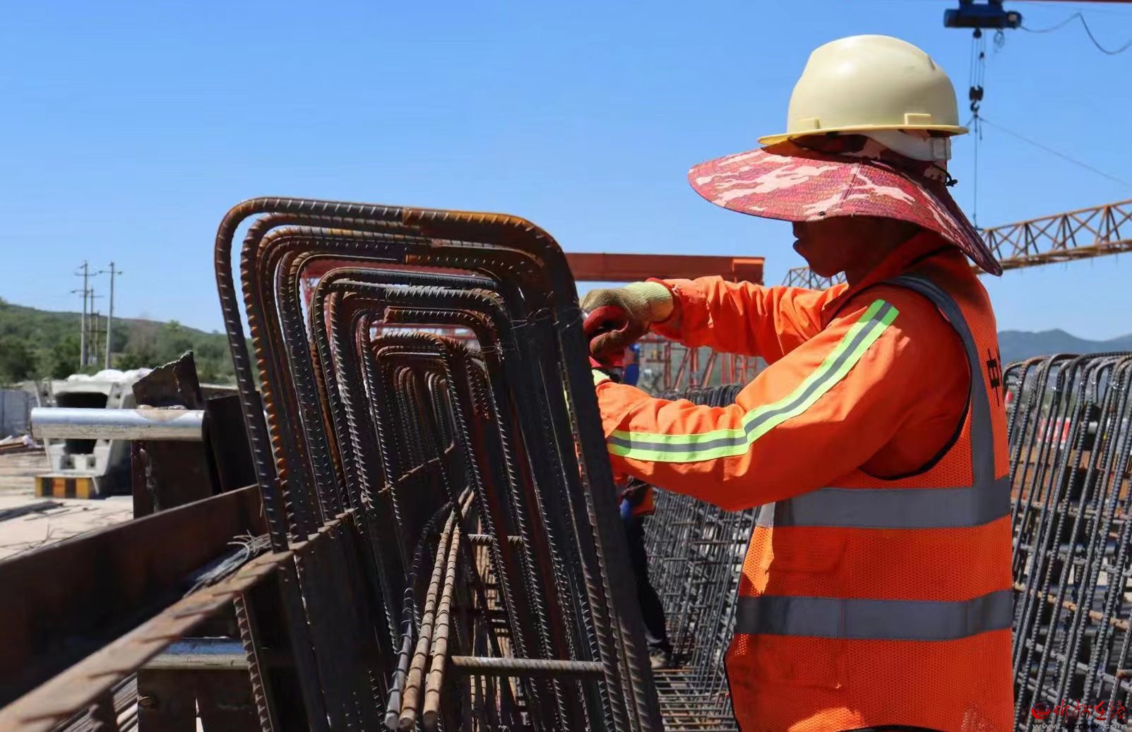 在箱梁預(yù)制現(xiàn)場,吊樁機(jī)、彎筋機(jī)、攪拌車的轟鳴聲不絕于耳。“整個工程將使用140片箱梁,目前已完成34片的制作,按照工程要求,預(yù)計(jì)將在8月15日前全部制作完成,但我們的目標(biāo)是力爭提前完成,為工程如期竣工做好保障。”汗水流得都快睜不開眼的負(fù)責(zé)箱梁工程的郭總信心十足地告訴記者。