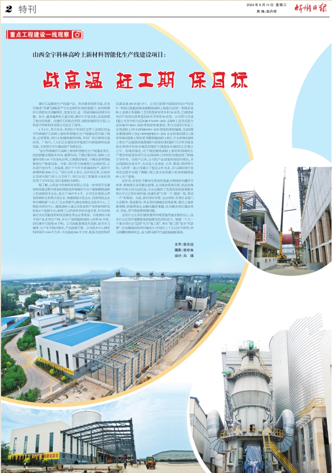 “金宇科林煤矸石高嶺土新材料智能化生產(chǎn)線建設(shè)項(xiàng)目,包括新建分級脫水車間、煅燒車間、干燥打散車間、高嶺土倉儲車間和110千伏變電站等,已購置回轉(zhuǎn)窯、干燥設(shè)備等智能制造生產(chǎn)配套設(shè)備。目前,項(xiàng)目的主體建筑已全部封頂,正在進(jìn)行室內(nèi)外二次裝修,預(yù)計(jì)于今年年底建成投產(chǎn),屆時可新增利稅2000萬元?!表?xiàng)目負(fù)責(zé)人表示,在忻府區(qū)委、區(qū)政府以及相關(guān)部門的大力支持下,項(xiàng)目從動工到建筑主體封頂僅用了半年時間,項(xiàng)目進(jìn)展較為順利。
