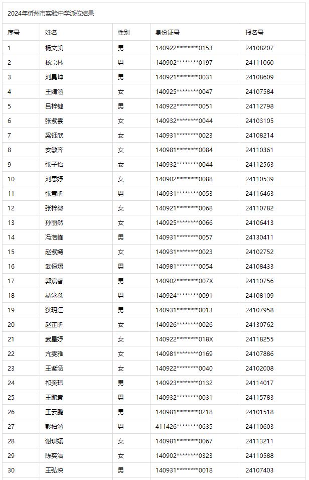 2024年忻州市實(shí)驗(yàn)中學(xué)派位結(jié)果