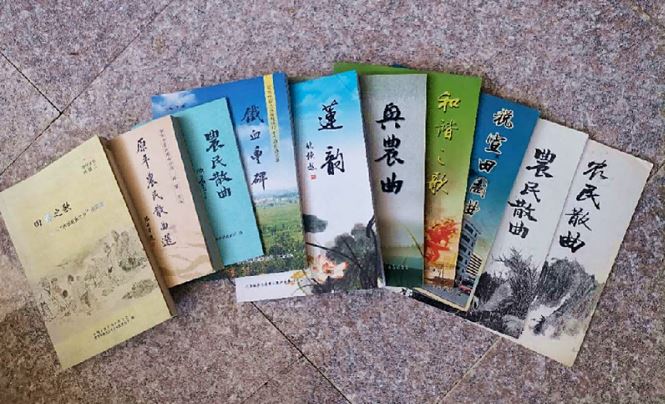 成員們的執(zhí)著與熱愛也結(jié)出了累累碩果。16年來,原平農(nóng)民散曲社陸續(xù)自費(fèi)編輯出版了《興農(nóng)曲》《鐵血豐碑》《農(nóng)民散曲選》《田籟之歌》等10多冊(cè)農(nóng)民詩曲集,免費(fèi)發(fā)給群眾閱讀;先后共創(chuàng)作散曲作品4萬余首,在省級(jí)以上書報(bào)刊物發(fā)表作品4000余首;噴繪展板300余幅,在各鄉(xiāng)村農(nóng)貿(mào)集市、戲場、廟會(huì)、婚慶等場地懸掛展出宣講200多場次,受眾達(dá)2萬人以上;利用現(xiàn)代網(wǎng)絡(luò)創(chuàng)辦微刊,現(xiàn)已發(fā)表作品300余期,在弘揚(yáng)和發(fā)展中華優(yōu)秀傳統(tǒng)文化中起到了事半功倍的作用。