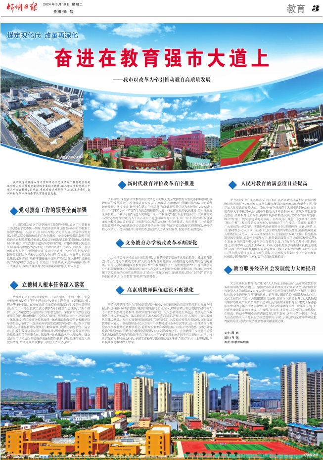 我市教育系統(tǒng)深入學習貫徹習近平總書記關于教育的重要論述和對山西工作的重要講話重要指示精神,深入學習貫徹黨的二十屆三中全會精神,在市委、市政府的正確領導下,以改革為牽引,在創(chuàng)新和改革中推動全市教育高質(zhì)量發(fā)展。