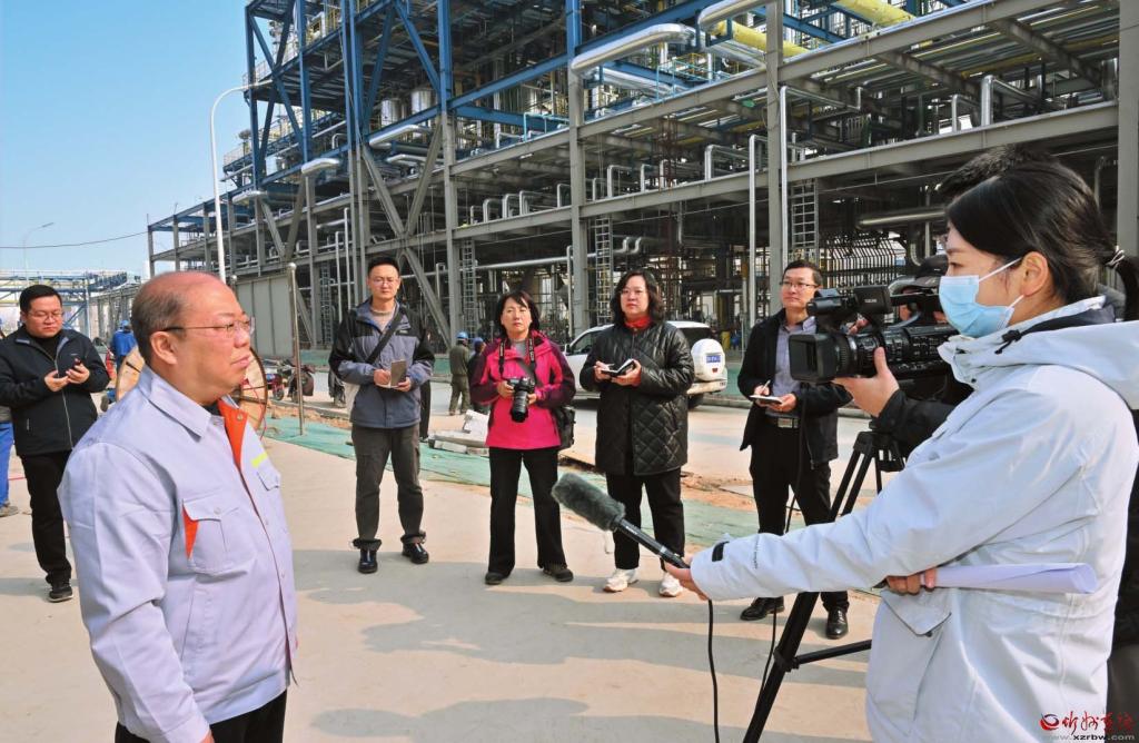 “省市媒體采風(fēng)行”記者走進(jìn)原平市同德科創(chuàng)PBAT一體化項(xiàng)目建設(shè)現(xiàn)場(chǎng)采訪。記者 馮曉磊攝