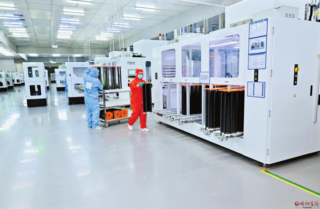 項目于2023年3月投產(chǎn)運(yùn)營。目前,2號廠房已實現(xiàn)滿產(chǎn),1號廠房設(shè)備安裝調(diào)試已近尾聲,即將投產(chǎn)。項目全面投產(chǎn)達(dá)效后,產(chǎn)能達(dá)到“50GW電池+50GW組件”,可實現(xiàn)年產(chǎn)值60億元,年上繳稅收3億元,提供就業(yè)崗位1400個。