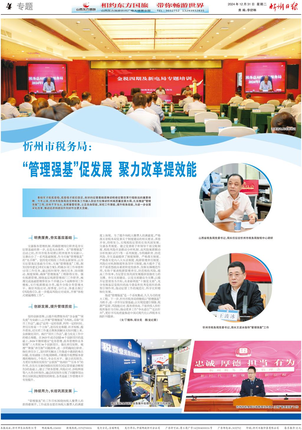 基礎(chǔ)牢才能底座穩(wěn),底座穩(wěn)才能后勁足,良好的征管基礎(chǔ)是推動稅收征管改革行穩(wěn)致遠的重要保障。今年以來,忻州市稅務(wù)局自覺將稅務(wù)工作融入到全方位推動忻州高質(zhì)量發(fā)展大局,扎實推進“管理強基”工程,堅持干字當頭,發(fā)揮垂管優(yōu)勢,立足自身職能,深挖工作潛能,提升稅務(wù)效能,為進一步全面深化改革、推動經(jīng)濟持續(xù)回升向好作出更大貢獻。