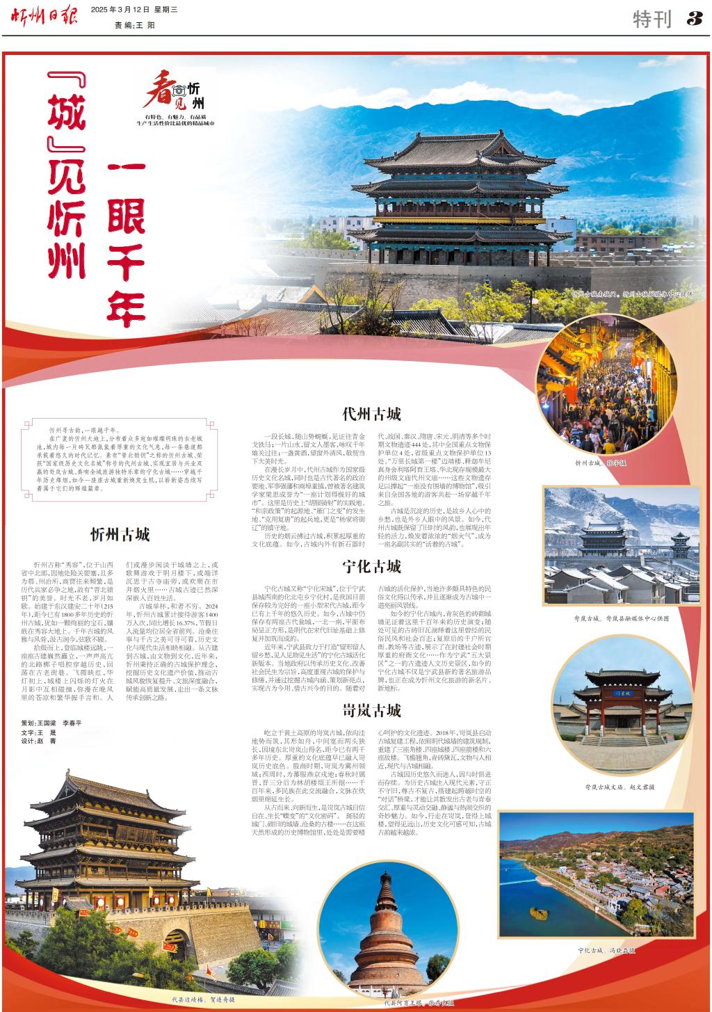 在廣袤的忻州大地上,分布著眾多宛如璀璨明珠的古老城池,城內(nèi)每一片磚瓦都氤氳著厚重的文化氣息,每一條巷道都承載著悠久的時代記憶。素有“晉北鎖鑰”之稱的忻州古城、榮獲“國家級歷史文化名城”稱號的代州古城、實(shí)現(xiàn)宜居與興業(yè)雙贏的岢嵐古城、奏響全域旅游獨(dú)特樂章的寧化古城……穿越千年歷史烽煙,如今一座座古城重新煥發(fā)生機(jī),以嶄新姿態(tài)續(xù)寫著屬于它們的輝煌篇章。