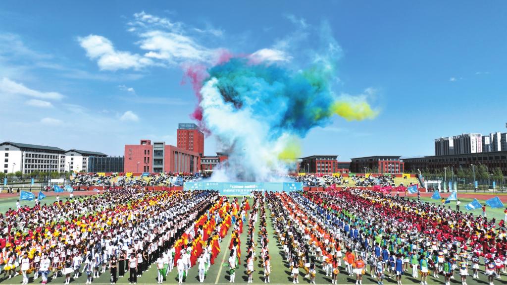 隨后,“幻彩乾坤·燃動(dòng)忻師”第四屆健身操大賽點(diǎn)燃全場激情。來自各院系的近20支隊(duì)伍3000余名學(xué)子以躍動(dòng)舞姿展現(xiàn)青春風(fēng)采,活力四射的表演贏得陣陣喝彩。