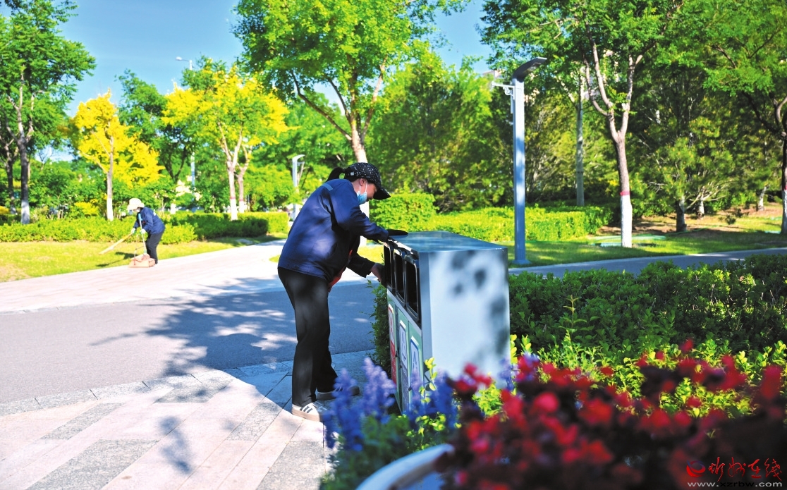 遺山公園有“10分鐘保潔圈”——在公園20多萬平方米的范圍內(nèi),任意一處出現(xiàn)垃圾,在10分鐘內(nèi)必須清理完畢。保潔員每天從早6時到晚10時,不間斷地在各自責任區(qū)域巡回檢查、清理。起初,一名保潔員一天的微信步數(shù)達到3萬,意味著每天行走近20公里?,F(xiàn)在配備了電動三輪車,降低了工作強度,提高了作業(yè)效率。