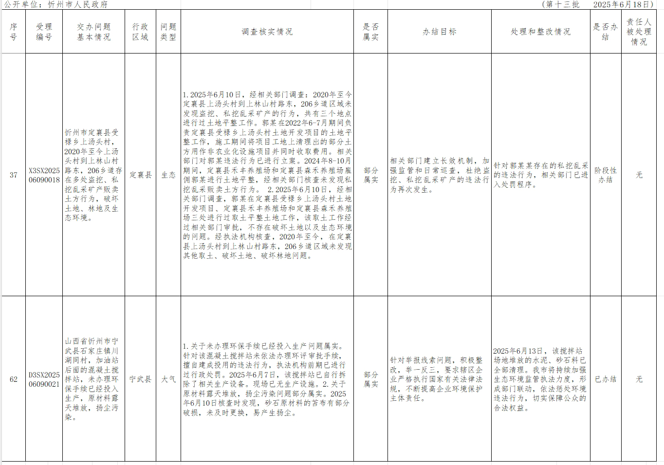 中央生態(tài)環(huán)境保護督察組群眾信訪舉報轉辦和邊督邊改公開情況一覽表(第十三批)