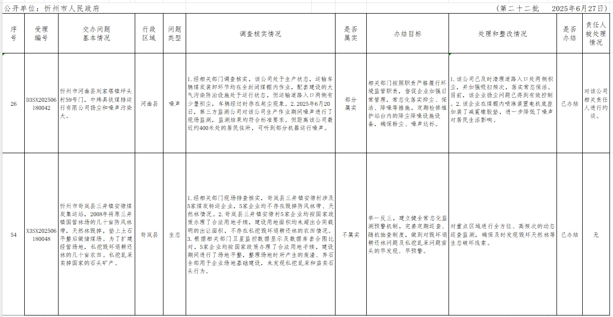 中央生態(tài)環(huán)境保護督察組群眾信訪舉報轉(zhuǎn)辦和邊督邊改公開情況一覽表(第二十二批)