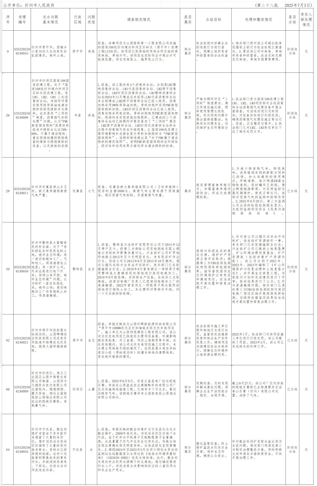 中央生態(tài)環(huán)境保護督察組群眾信訪舉報轉(zhuǎn)辦和邊督邊改公開情況一覽表(第二十八批)