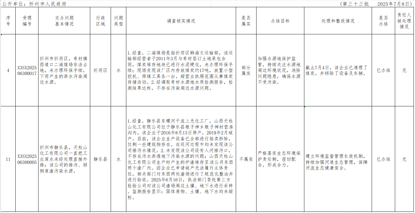 中央生態(tài)環(huán)境保護(hù)督察組群眾信訪舉報(bào)轉(zhuǎn)辦和邊督邊改公開(kāi)情況一覽表(第三十三批)
