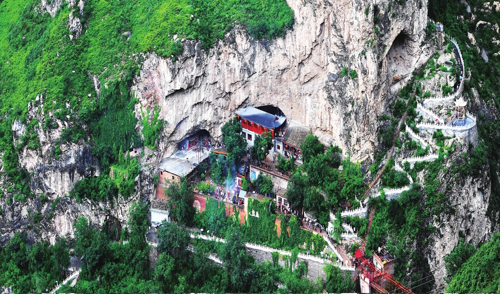 禹王洞坐落在忻州城南20公里的系舟山腰,一座巨大的三角形洞口鑲嵌于懸崖峭壁之上,海拔1768米。舊地方志稱(chēng)其為“仙人洞”,直到一段治水傳說(shuō)才賦予了它新的名字。