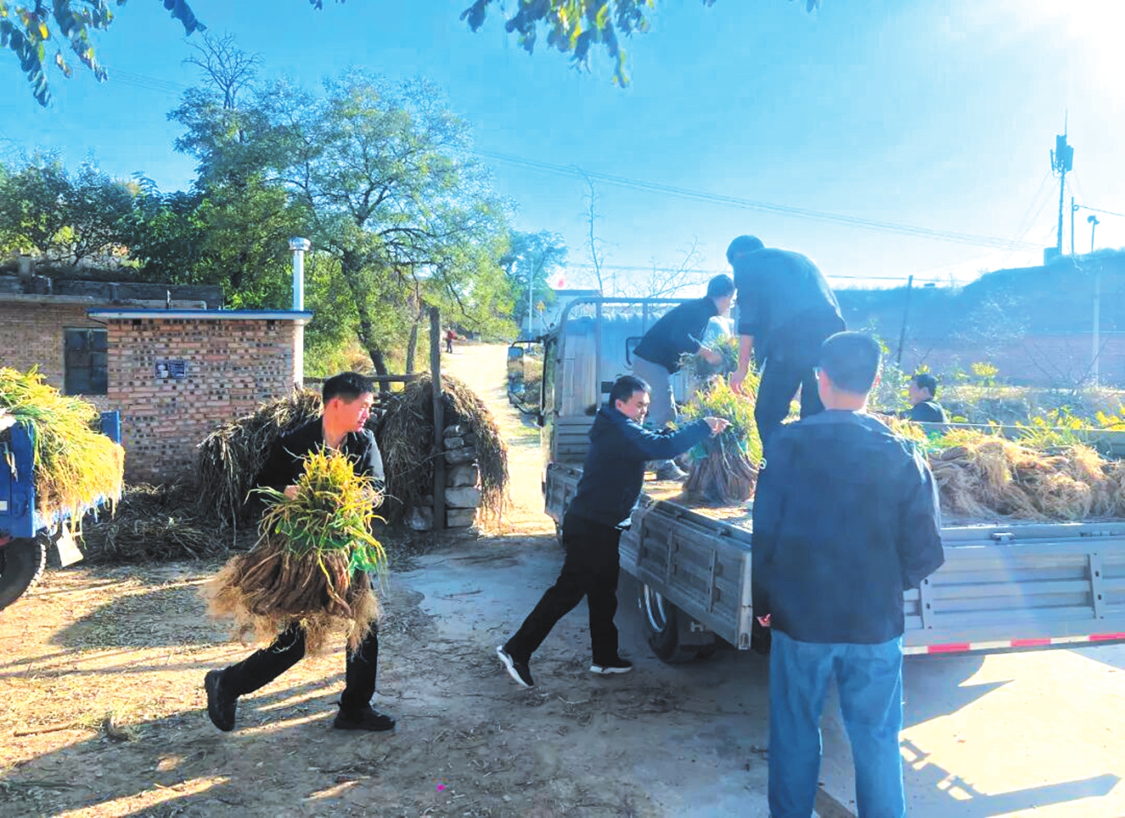 駐村工作隊員與村民齊心協(xié)力,將豐收的紅蔥集中裝車,準(zhǔn)備發(fā)往市場。