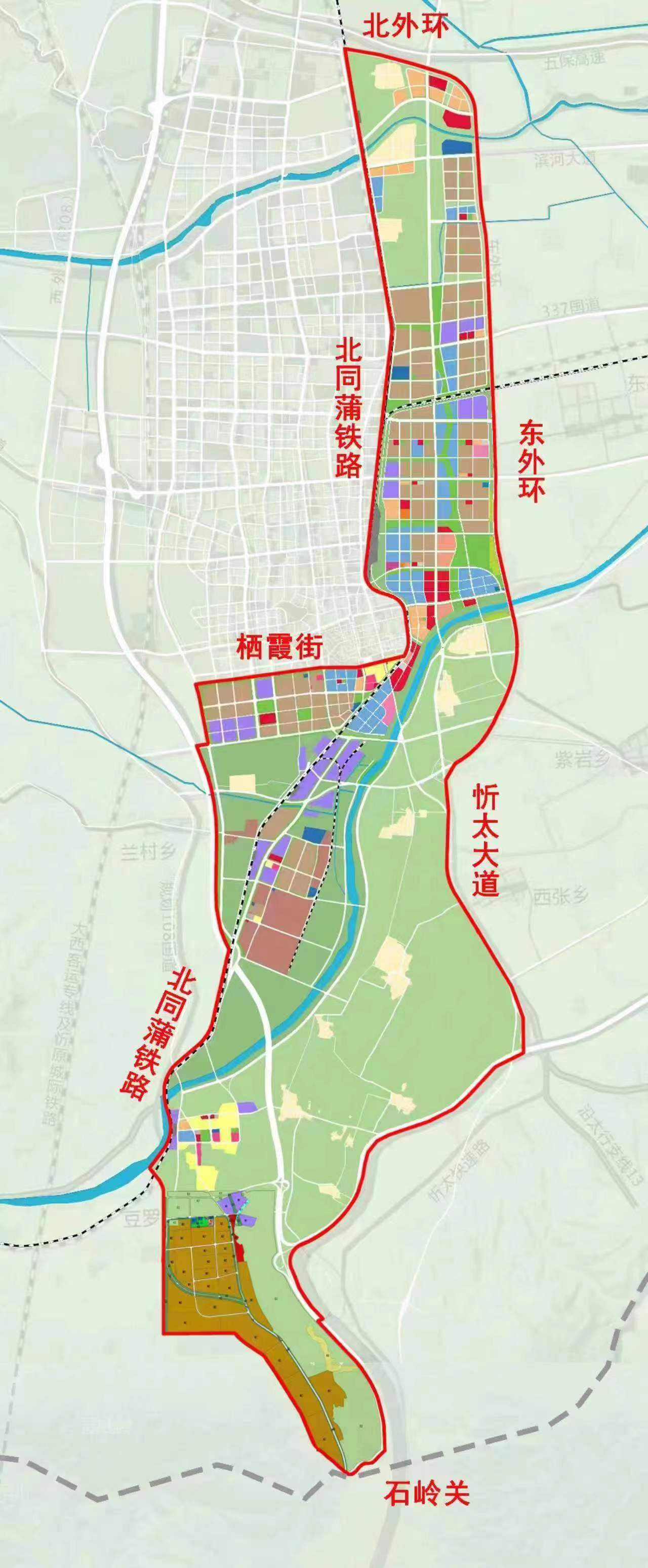 規(guī)劃面積約100平方公里,北至北外環(huán),南至石嶺關(太原界),西至北同蒲鐵路,東至東外環(huán)。新區(qū)作為太忻一體化經(jīng)濟區(qū)忻州片區(qū)的啟動區(qū),堅持生態(tài)優(yōu)先、綠色發(fā)展,統(tǒng)籌生活、生態(tài)、生產(chǎn)三大空間,以“一心雙核、三軸五片區(qū)”規(guī)劃布局,預留未來產(chǎn)業(yè)發(fā)展用地,重點發(fā)展雜糧產(chǎn)業(yè)、現(xiàn)代物流產(chǎn)業(yè)、新能源材料產(chǎn)業(yè)、文旅產(chǎn)業(yè)和科技創(chuàng)新智造產(chǎn)業(yè),北部打造高新制造集合體、云中河東段打造休閑度假文旅區(qū)、中部打造創(chuàng)新樞紐核心區(qū)、西南部打造產(chǎn)業(yè)提升區(qū)、東南部打造多彩良田示范區(qū),形成與大盂產(chǎn)業(yè)新城南北呼應之勢。