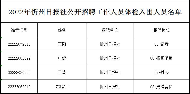 通過面試入圍體檢人員。