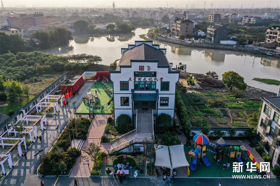 11月7日,在杭州市余杭區(qū)塘棲鎮(zhèn)三星村文化禮堂前,村民在展示傳統(tǒng)技藝“翻絲綿”(無人機照片)。當日,浙江省杭州市余杭區(qū)農(nóng)村文化禮堂“百村千場”聯(lián)盟走親在塘棲鎮(zhèn)三星村文化禮堂正式啟動。活動現(xiàn)場組織了米塑、滾燈、鰲魚燈、高蹺、掮爐子等余杭非遺技藝走親展示以及塘棲鎮(zhèn)禮堂聯(lián)盟原創(chuàng)節(jié)目展演。 從2020年3月開始,浙江省杭州市余杭區(qū)塘棲鎮(zhèn)以“小康路上我們一起曬幸?!睘橹黝},啟動美麗鄉(xiāng)村禮堂文化節(jié)活動,開展“幸福接力賽”、文化“云”講課等一系列基層文化活動。塘棲鎮(zhèn)還創(chuàng)新推進了“禮堂聯(lián)盟”結(jié)對互促工作,與區(qū)級文化團隊結(jié)對共建,使鄉(xiāng)村文化禮堂“活”起來,全面提升鄉(xiāng)村百姓的幸福感。新華社記者 徐昱 攝