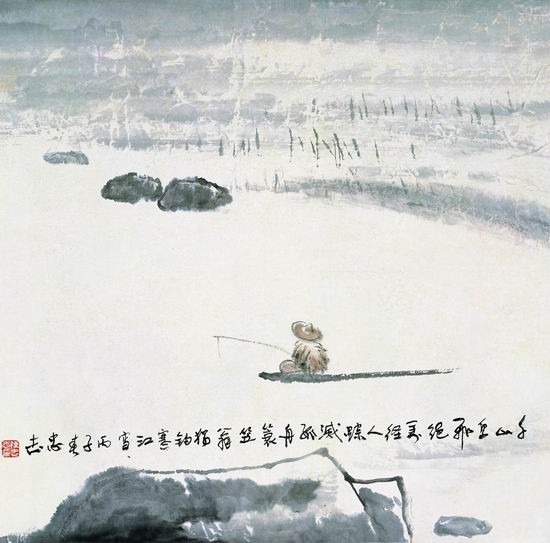 陳忠志《獨釣寒江雪》。來自人民網書畫頻道“人民美術館”