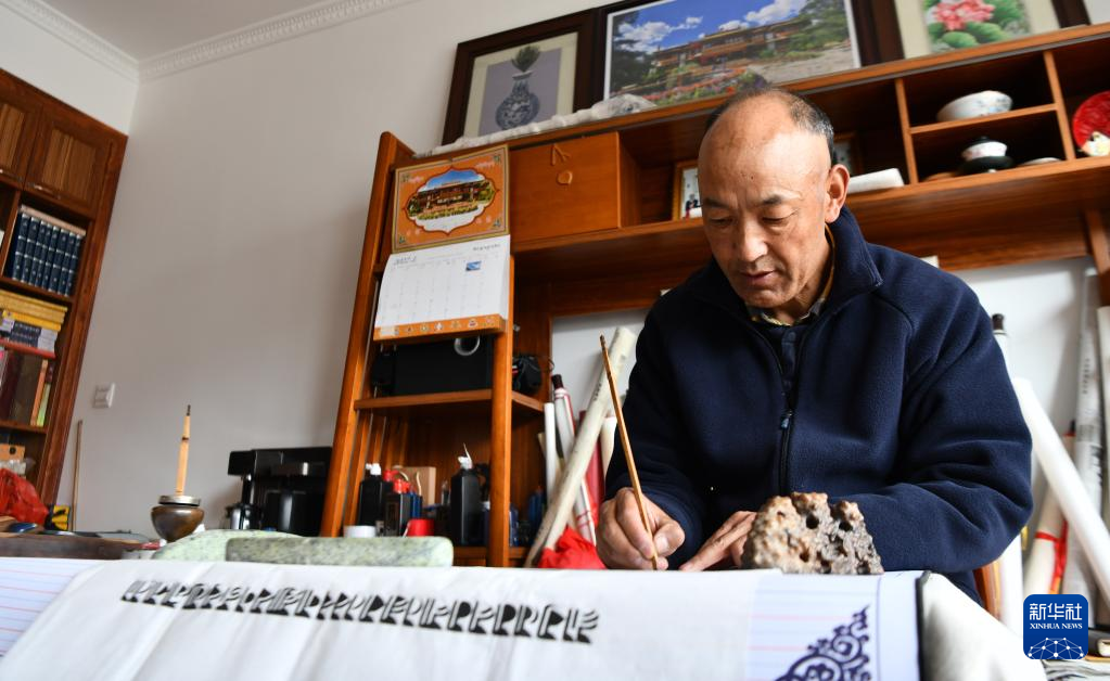 完成貝葉經(jīng)普查和修復(fù)工作后,久米次成仍躬耕古籍修復(fù)事業(yè),堅(jiān)持不懈完成了多部藏文文獻(xiàn)的修繕普查任務(wù)。2017年,久米次成入選第一批“西藏工匠”。新華社記者 晉美多吉 攝