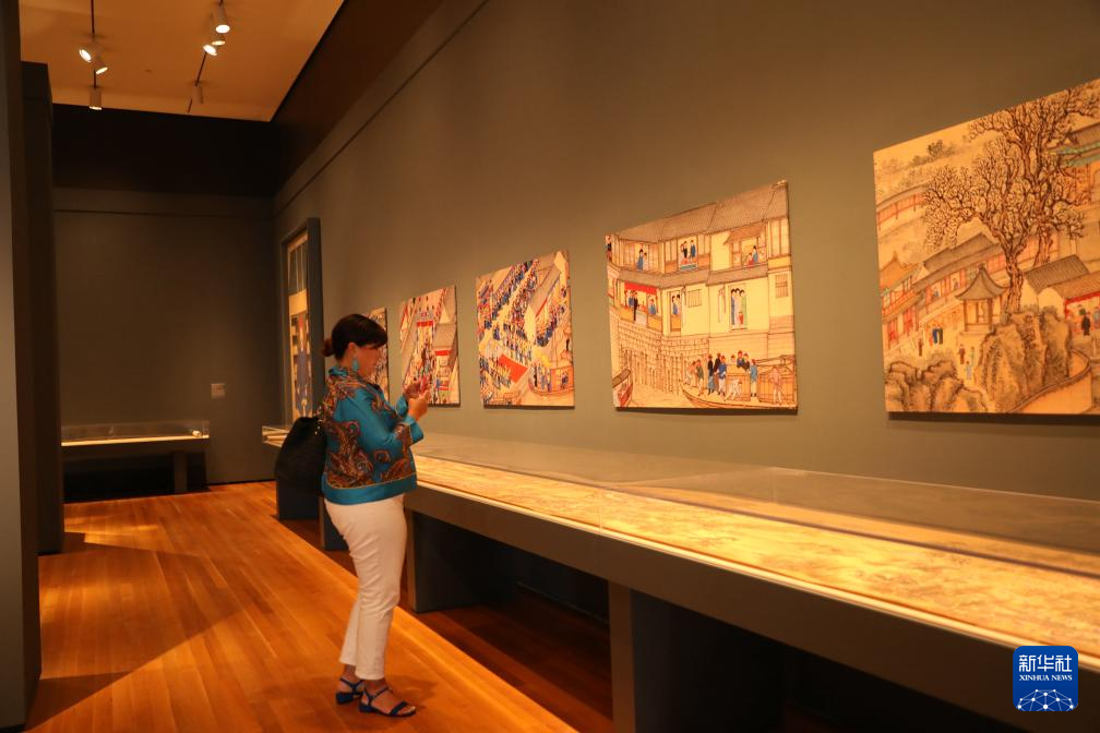 9月6日,在美國俄亥俄州克利夫蘭藝術(shù)博物館,一名男子參觀“人間天堂:中國江南珍寶展”。新華社記者施春攝