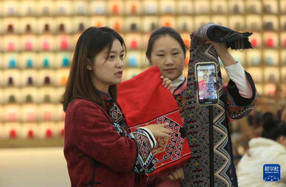 11月12日,在張家界市武陵源區(qū)乖幺妹土家族織錦基地,工人在直播銷售土家族織錦產(chǎn)品。 立冬過后,湖南省張家界市武陵源區(qū)非遺土家族織錦生產(chǎn)企業(yè)根據(jù)顧客訂單,制作圍巾、披肩、拖鞋、頭飾等冬季系列織錦產(chǎn)品,拓展線上線下銷售渠道,迎接冬天銷售旺季。新華社發(fā)(吳勇兵攝) (責(zé)任編輯:盧相?。?/span> |