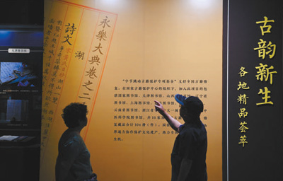 國家圖書館,觀眾在“同心護(hù)珍寶 聚力續(xù)華章——‘字節(jié)跳動(dòng)古籍保護(hù)專項(xiàng)基金’成果展”上駐足觀看。