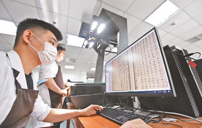 北京師范大學(xué)圖書館,工作人員正在將古籍進(jìn)行數(shù)字化處理。