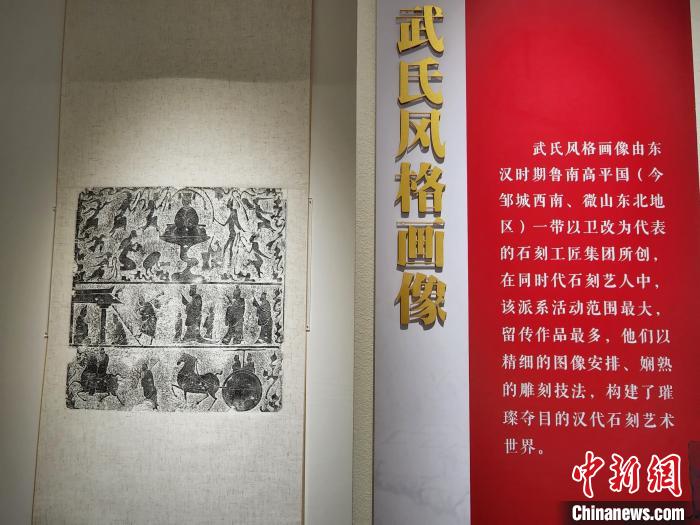記者當(dāng)天在展覽現(xiàn)場了解到,武氏墓群位于今山東省濟(jì)寧市嘉祥縣城南15公里處,是一座東漢時(shí)期的家族墓地。武梁祠是其中的一座墓上石祠堂。以武梁祠為代表的武氏祠畫像,秉承三代鐘鼎玉器雕刻工藝,開啟魏晉唐宋繪畫的先河,其雕刻技藝之精妙,圖像內(nèi)容之豐富,居全國漢畫像石之首。