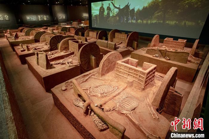 殷墟博物館新館內(nèi)的殷墟車馬遺跡展廳現(xiàn)場。 (中國國家文物局供圖)