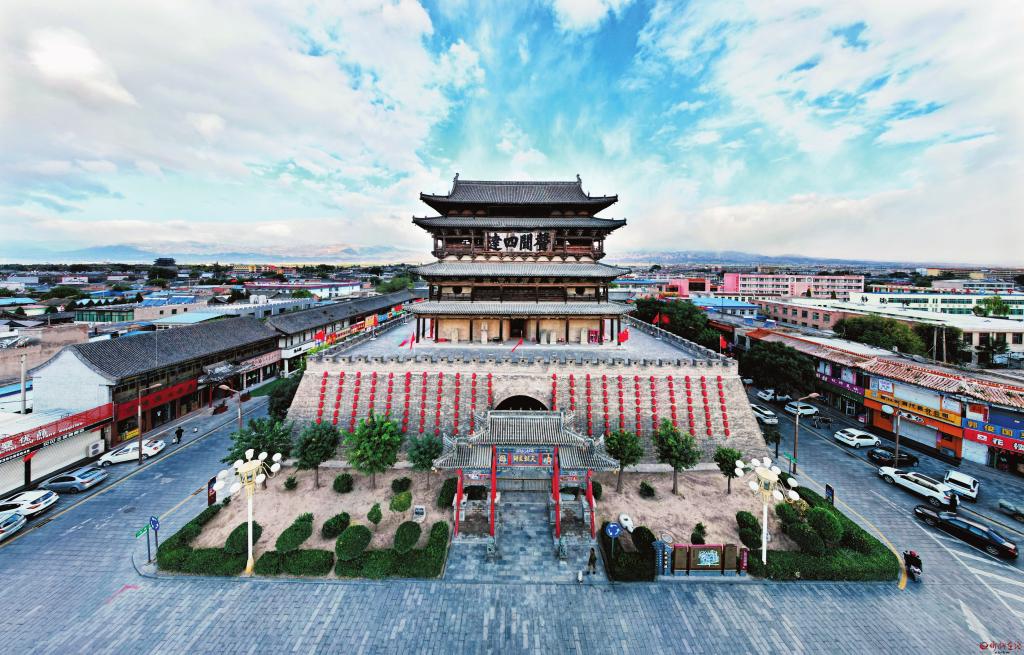 雁門關(guān)、寧武關(guān)、偏頭關(guān),是山西內(nèi)長城的三關(guān)。其中雁門關(guān)地處要沖,歷來是長城內(nèi)外兵家必爭之地。代縣古城因雁門關(guān)而生,因雁門關(guān)而聞名,城外有三十九堡十二聯(lián)城,城內(nèi)有關(guān)城、甕城,以及城墻上的十二座門樓、角樓,再加上城中的鼓樓、鐘樓,由此構(gòu)筑成龐大的軍事防御體系。邊靖樓地處古城中心,是整個三關(guān)防御體系的核心指揮部,這也正是一個州治所在地的鼓樓規(guī)模遠(yuǎn)遠(yuǎn)超過京師鼓樓規(guī)模的重要原因。